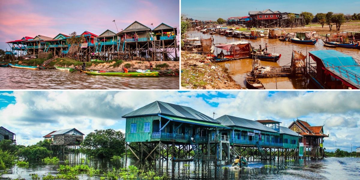 Kampong Khleang es único porque combina casas flotantes y casas sobre pilotes. Al visitar este pueblo, se pueden explorar ambos tipos de viviendas típicas del gran lago camboyano. Durante la estación seca, las casas flotantes están ancladas alrededor del lago y sólo se mueven durante la estación lluviosa.